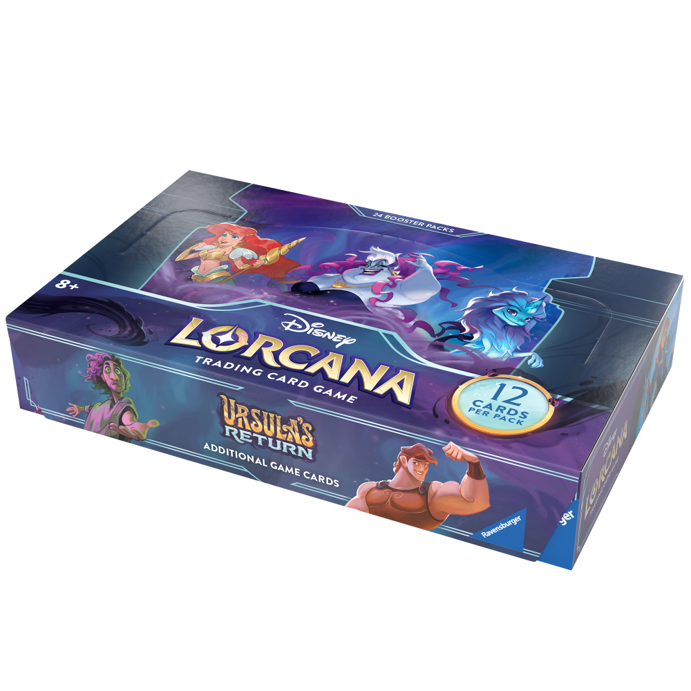 I motsetning til startkortstokker inneholder boosterpakker 12 tilfeldige kort fra Disney Lorcana TCG-settet Ursula's Return. Bruk booster-pakker til å bygge og tilpasse kortstokken din med evner og karakterer utover de som finnes i startkortstokker.